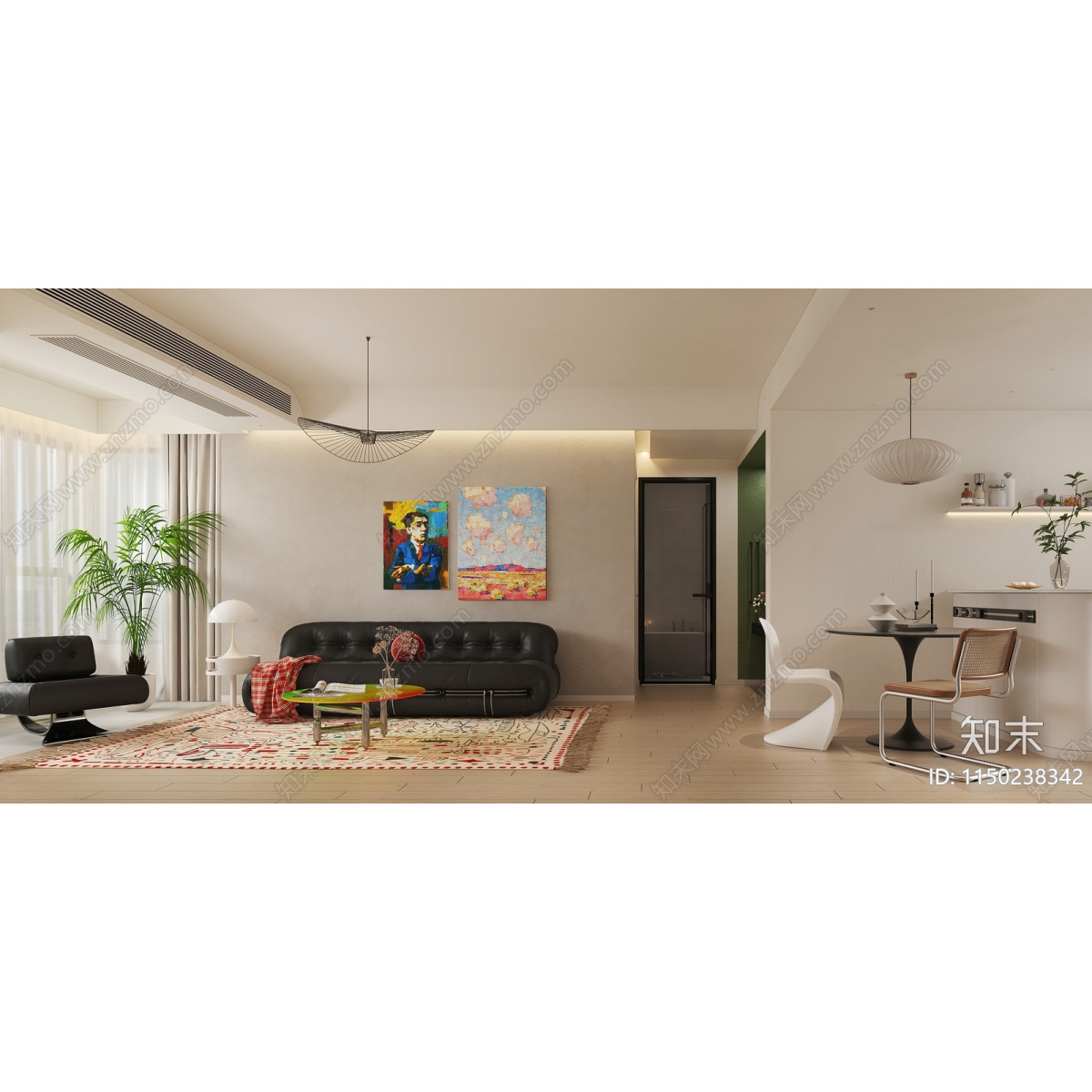 Nordic natural living room Kitchen Dining room Entrance 3D Model / 3Dsmax model