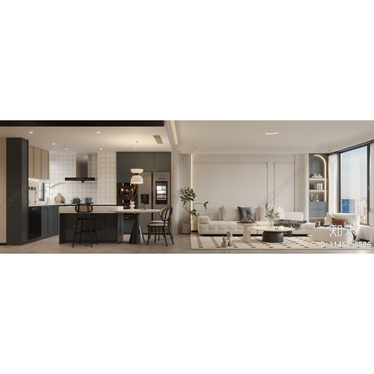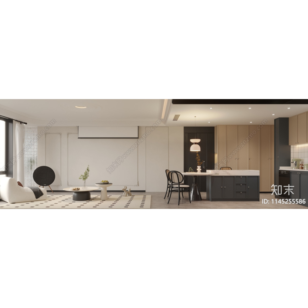 Modern French living room Dining room Kitchen Entrance 3D Model / 3Dsmax model