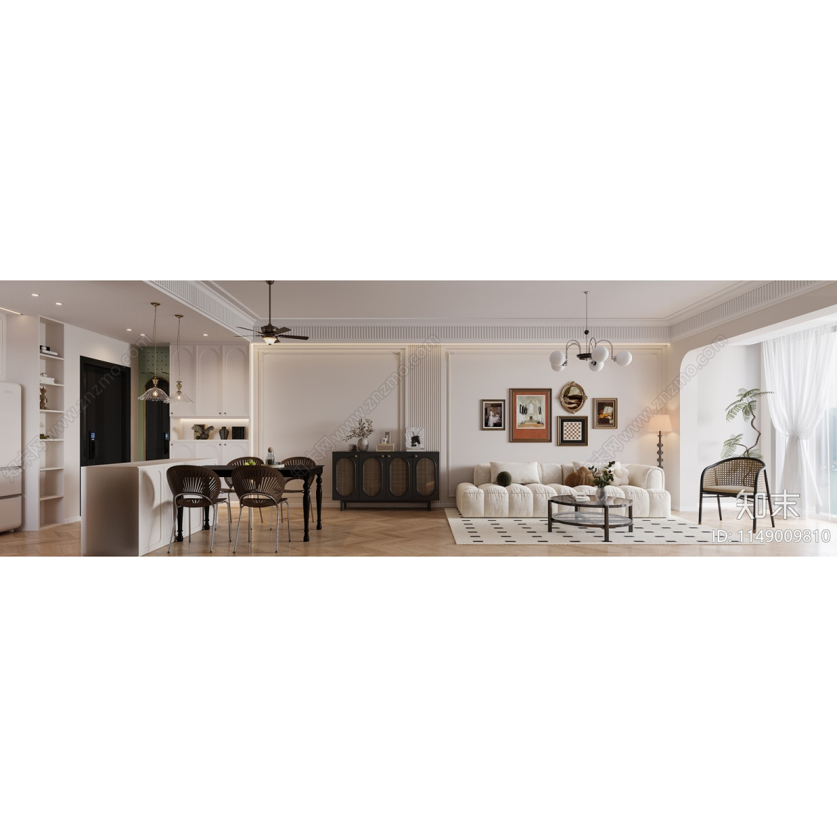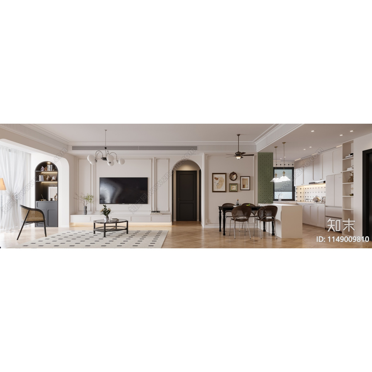 French Antique living room Dining room Kitchen 3D Model / 3Dsmax model