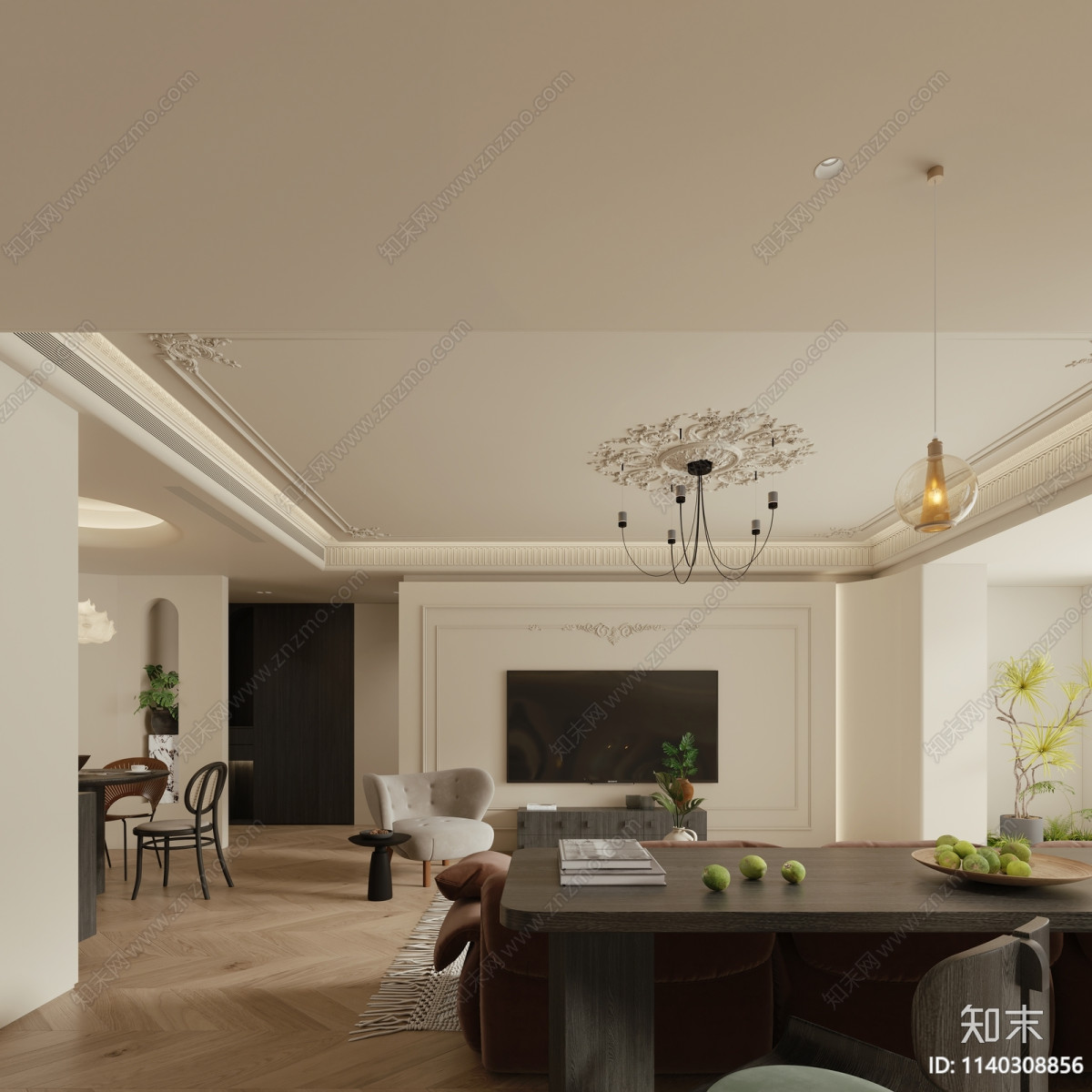 French Antique living room Dining room Entrance 3D Model / 3Dsmax model