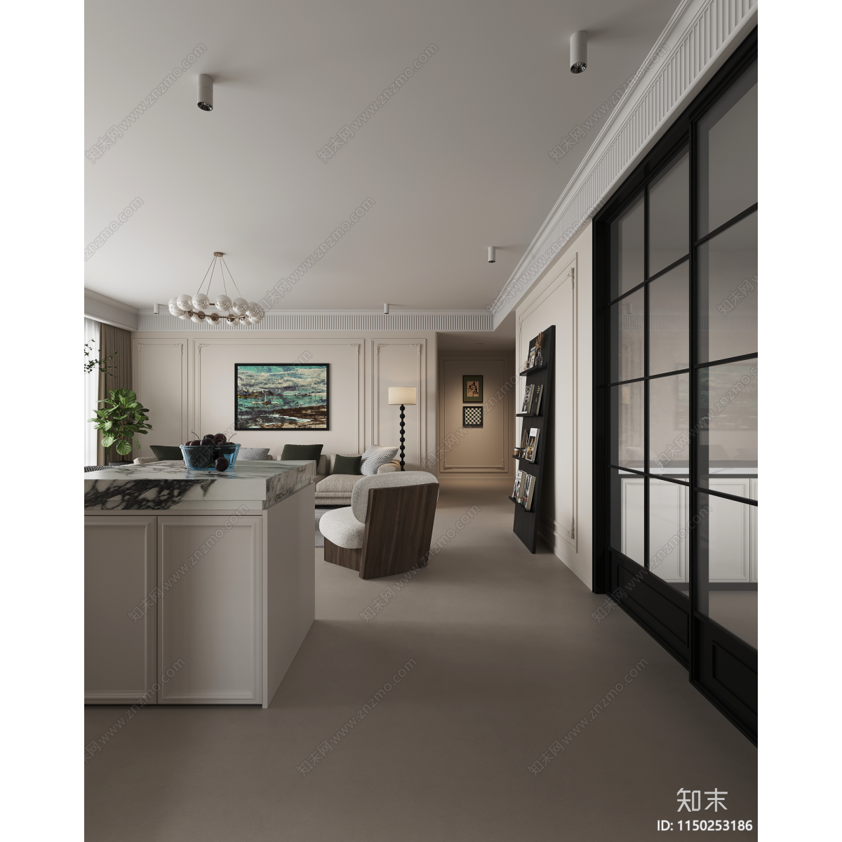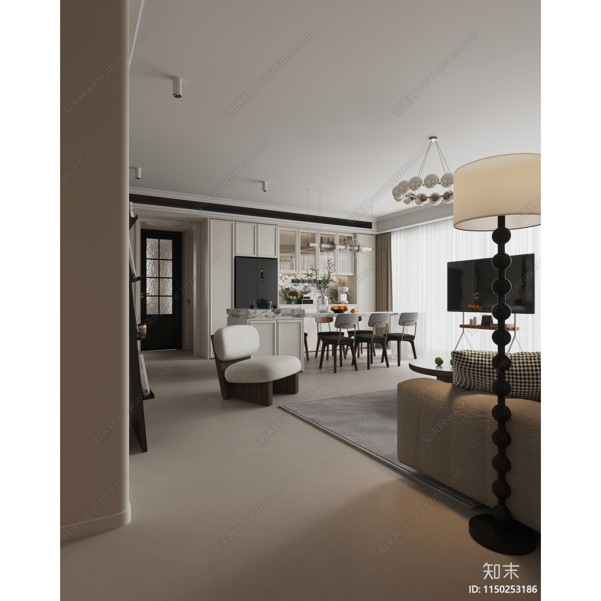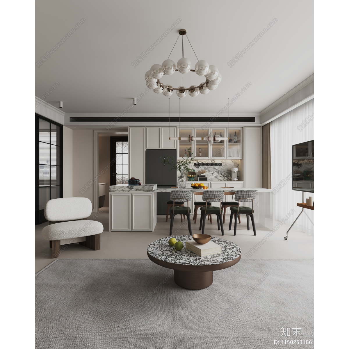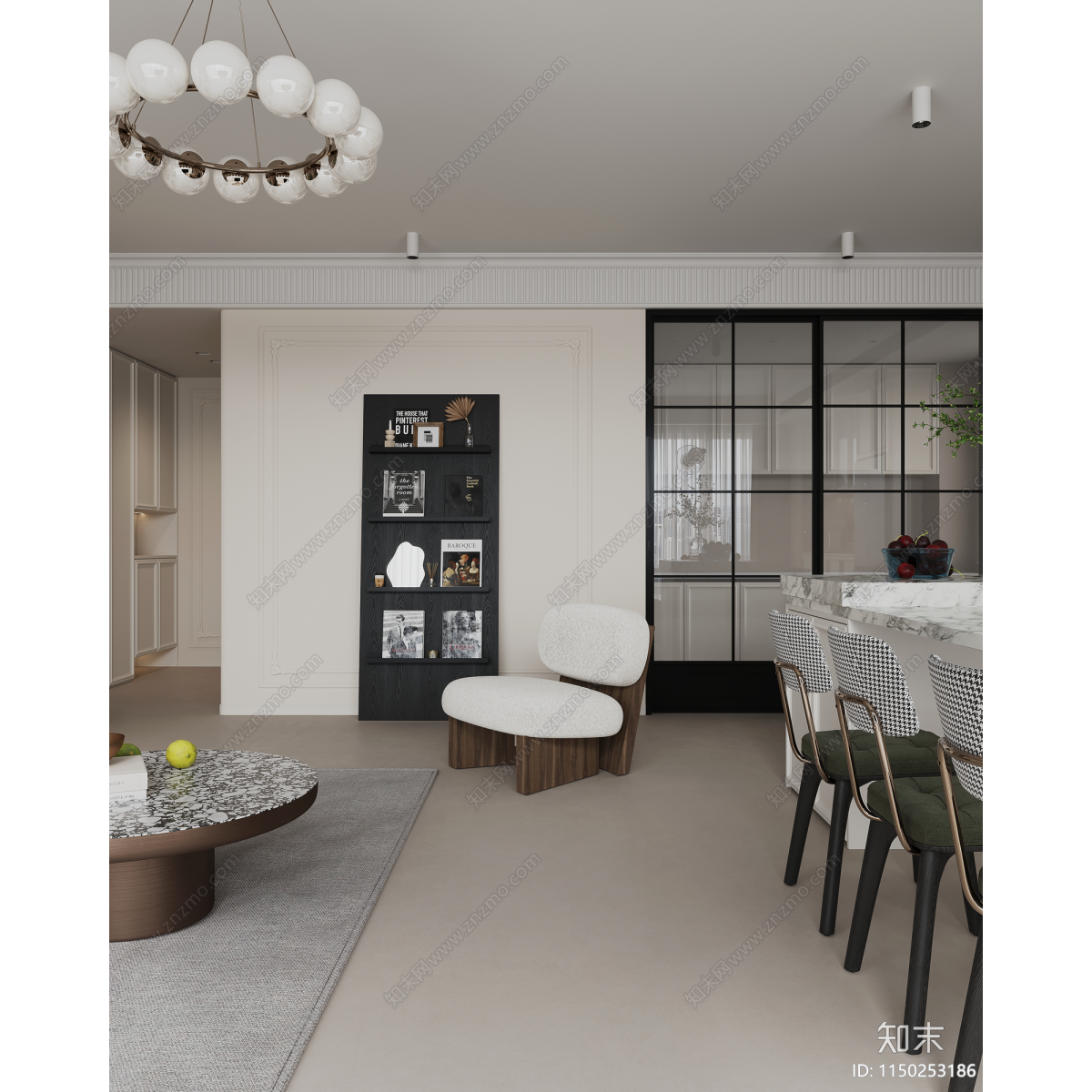 Modern French living room Dining room 3D Model / 3Dsmax model