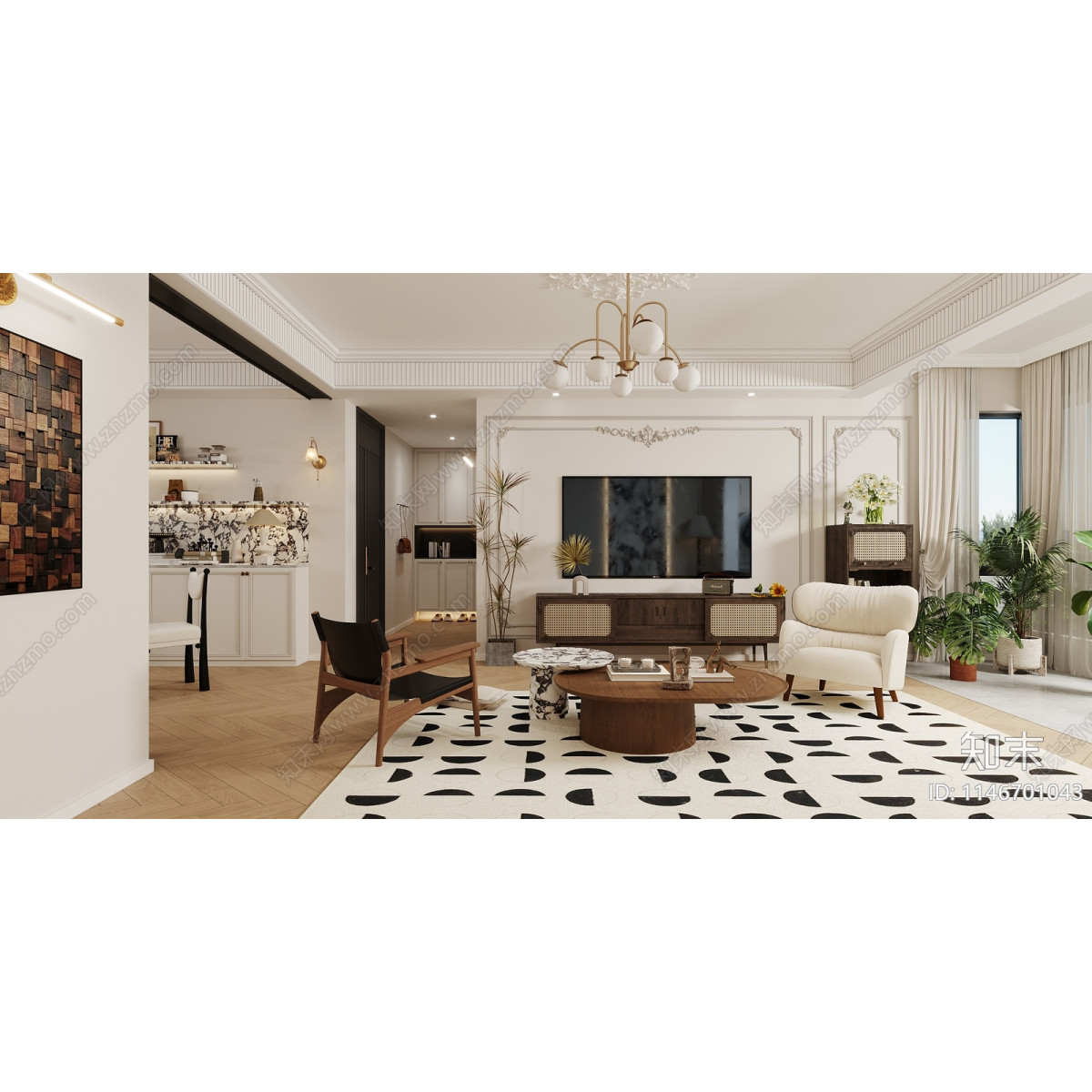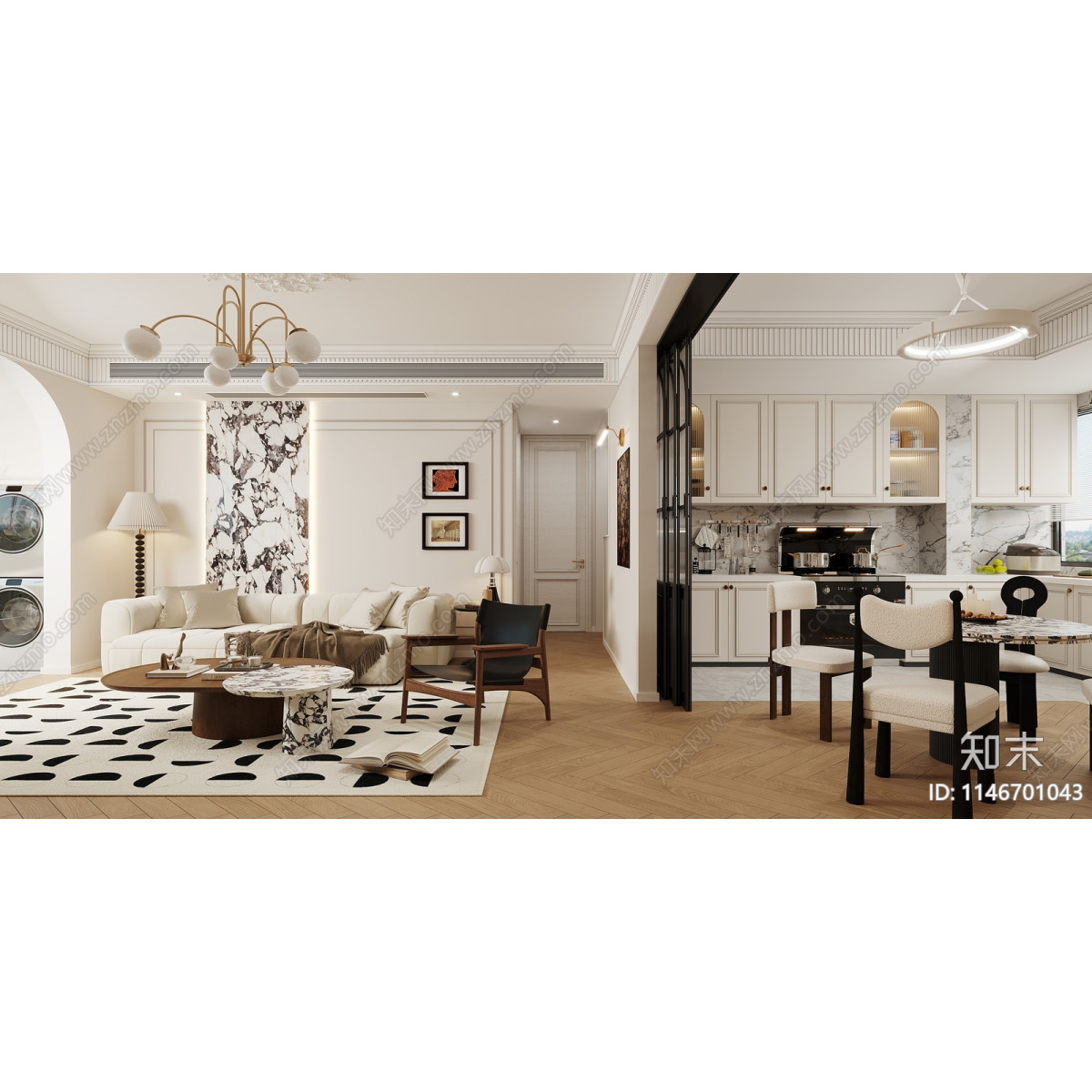 Modern French living room Kitchen 3D Model / 3Dsmax model