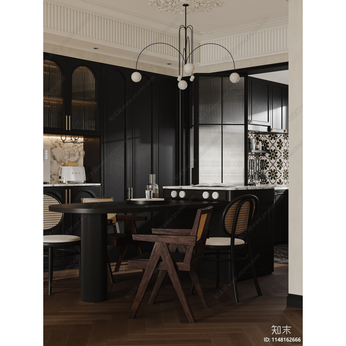 Antique French living room Dining room Kitchen 3D Model / 3Dsmax model