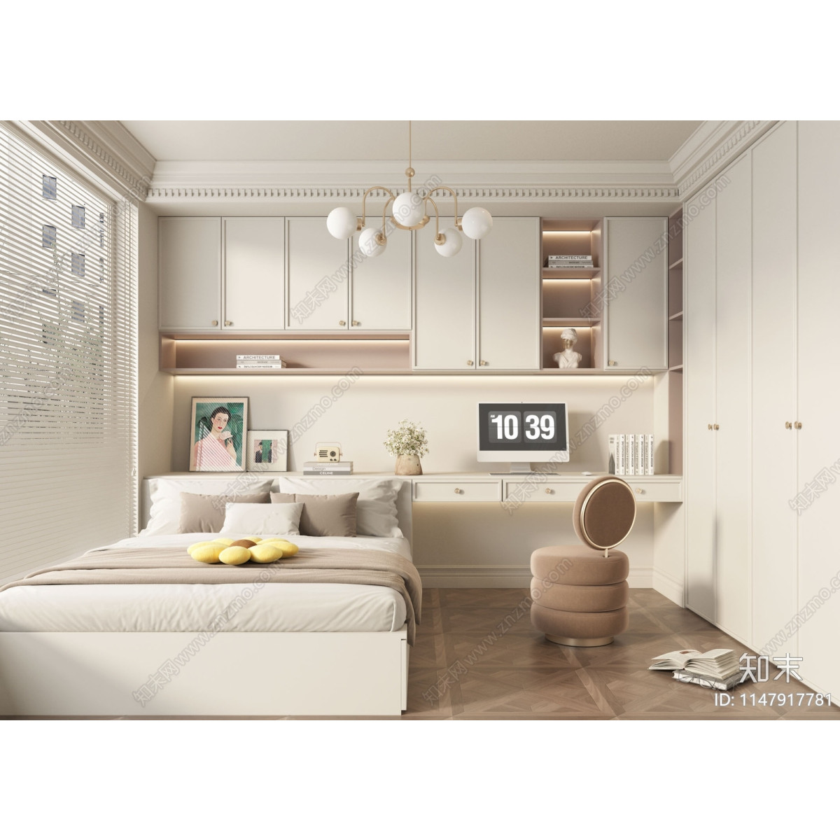 Modern French Students Bedroom Tatami 3D Model / 3Dsmax model
