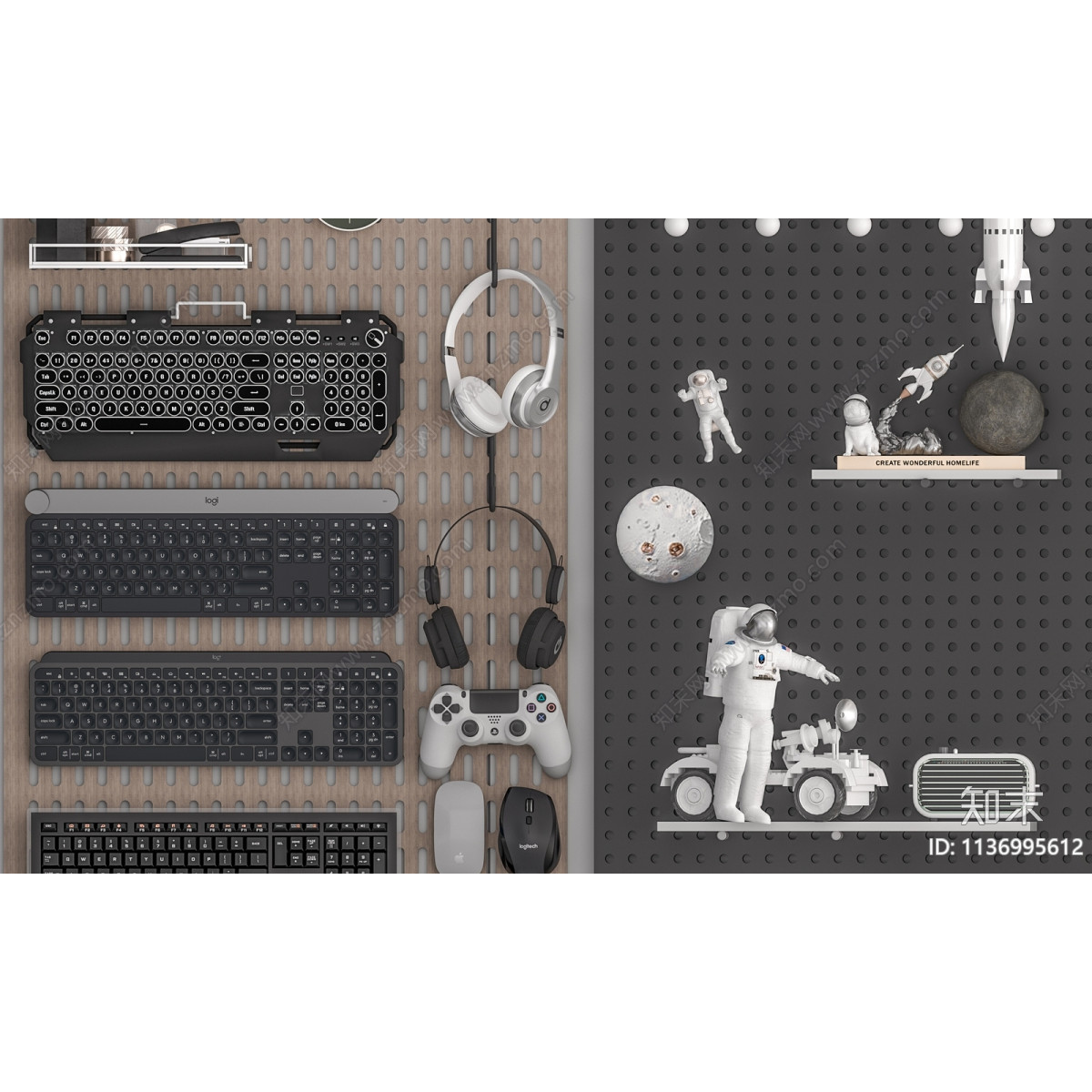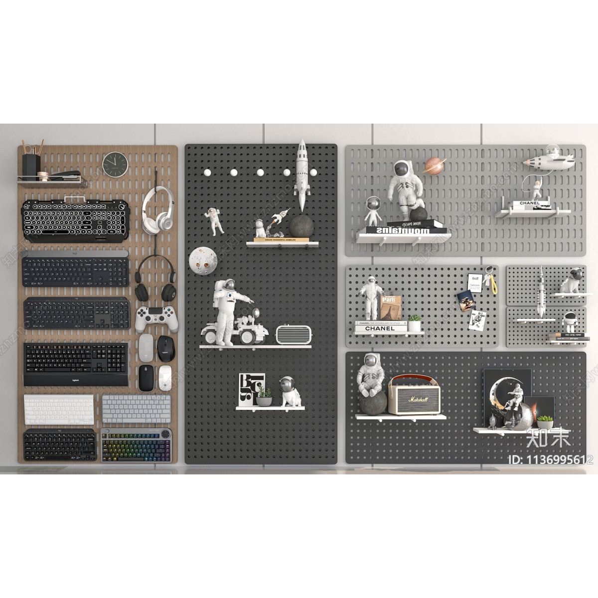 Perforated board Keyboards Headsets Wall hanging props collection 3D Model / 3Dsmax model