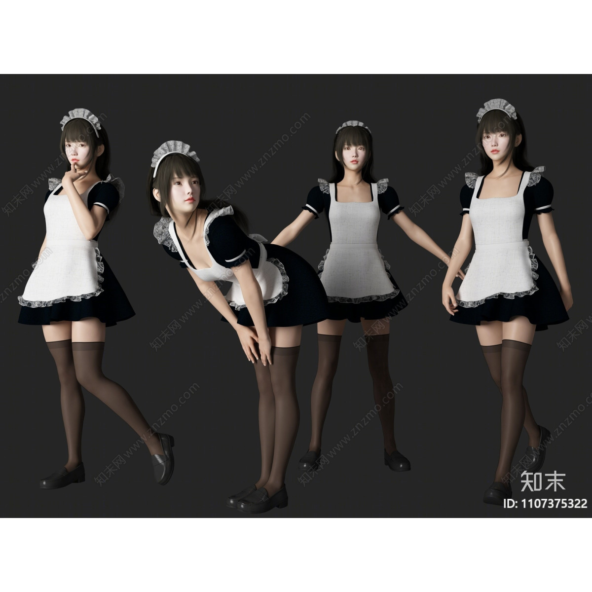 Maid uniform Female Character 3D Model / 3Dsmax model